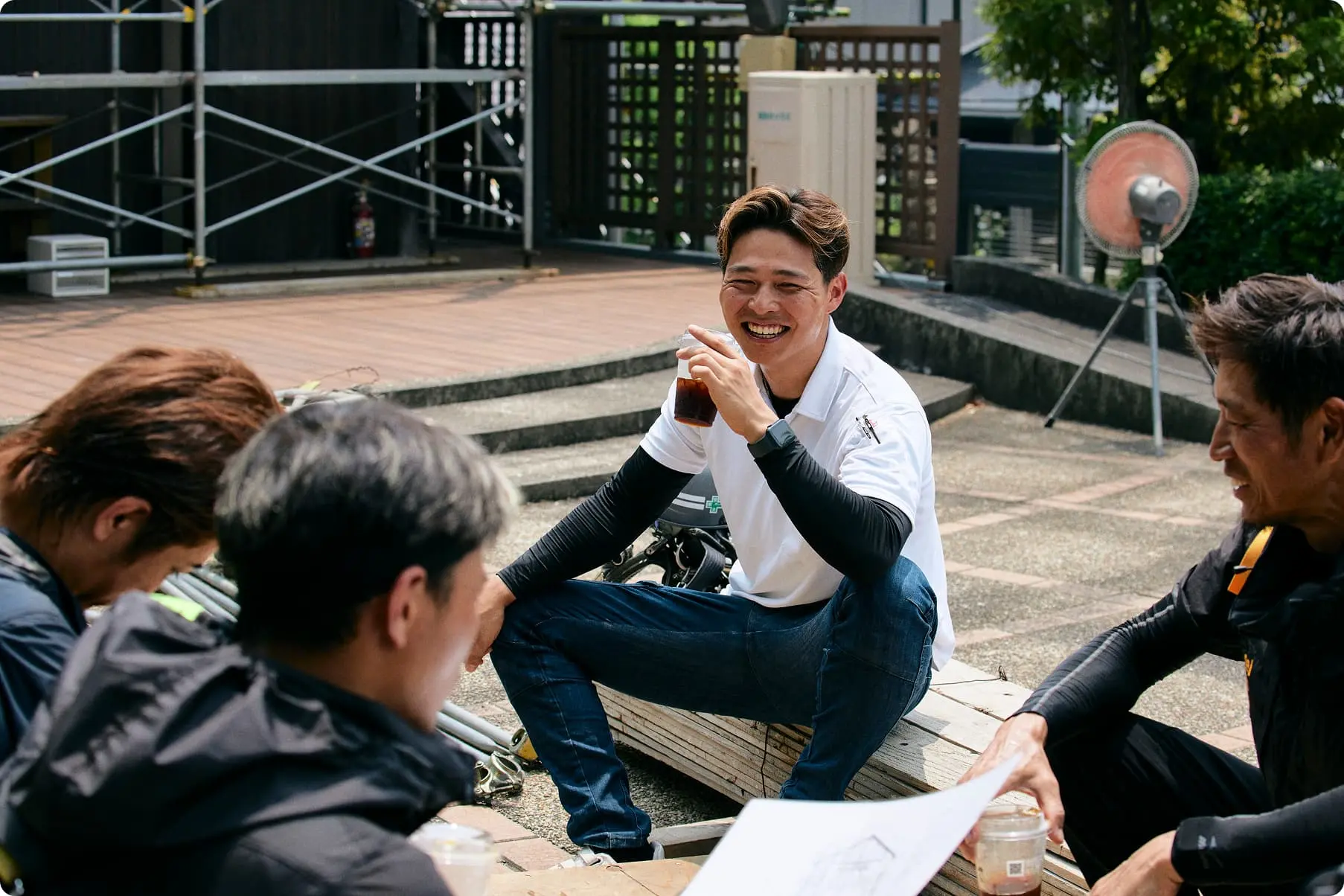 しかし、少し時間が経ったある日、偶然の出会いから再び足場の現場に立ち、現在の仕事仲間と出会いました。その頃から、地元では塗装や鳶職に就く先輩が多くいる中で、「鳶職って、かっこいいな」と心から思うようになっていきました。